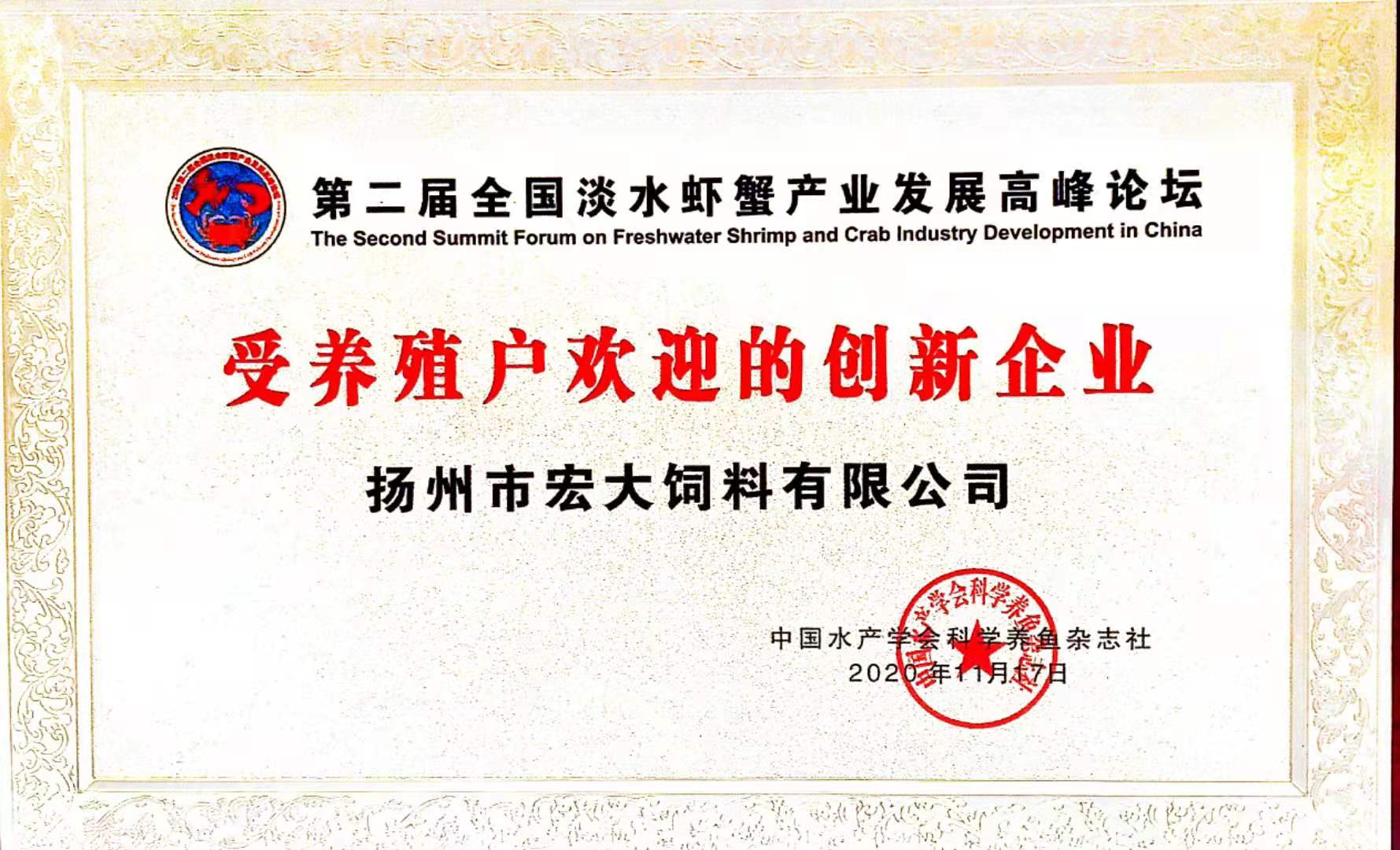 先后榮獲江蘇省飼料質(zhì)量合格產(chǎn)品、江蘇省名牌產(chǎn)品、揚(yáng)州市消費(fèi)者滿(mǎn)意商品、揚(yáng)州市質(zhì)量計(jì)量信得過(guò)產(chǎn)品等稱(chēng)號(hào)。